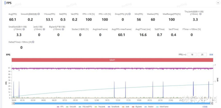 而在压力相当大的 “崩铁” 全高画质匹诺康尼 30 分钟跑图中,荣耀 WIN 也是不负众望,同样跑出了 59.7 帧几乎满帧的成绩。